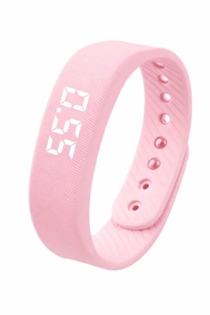 Das Armband ist in den Farben Weiß, Hellblau, Schwarz und Rosa erhältlich.