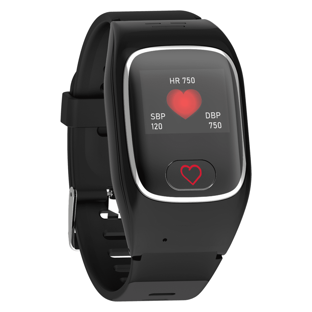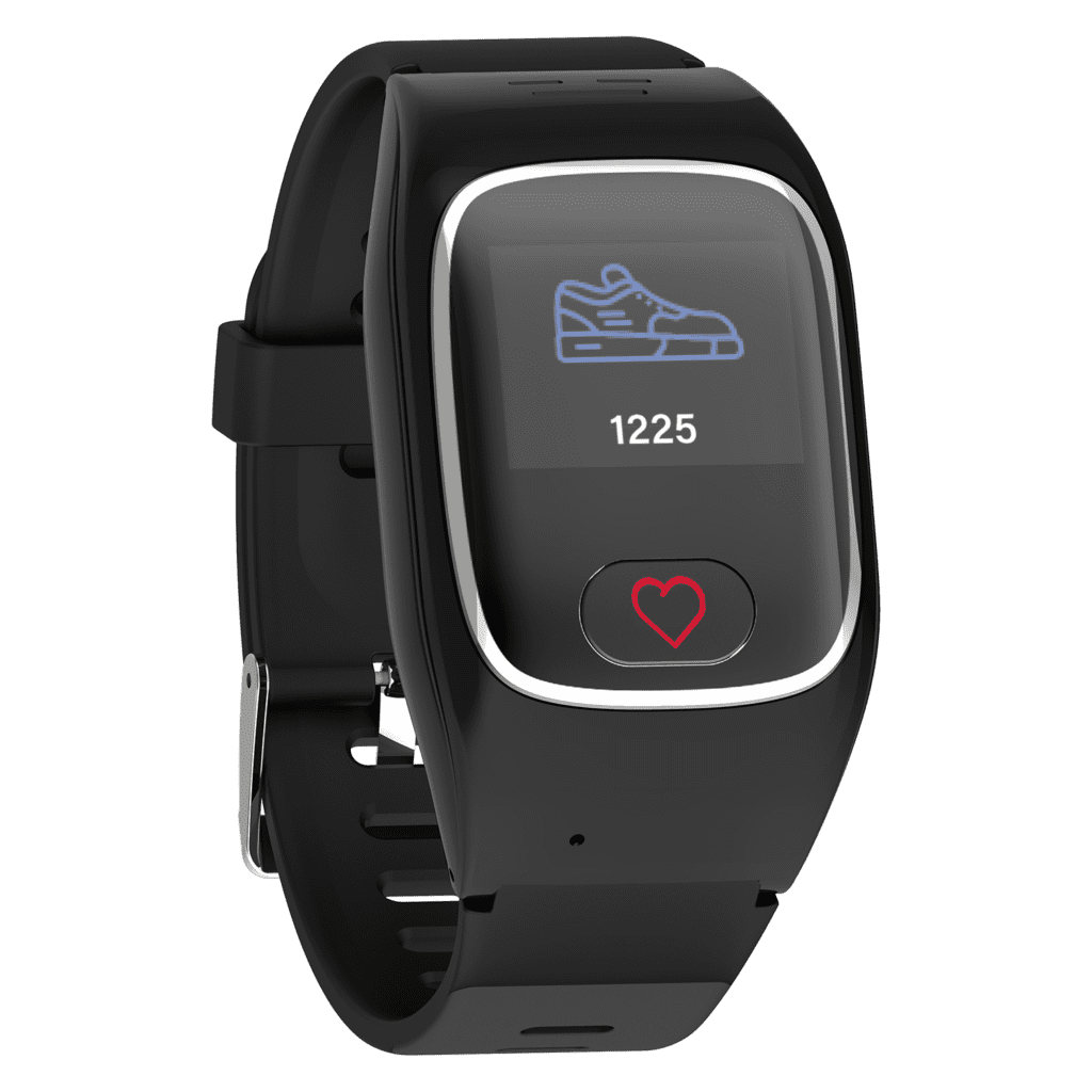 – Pulsmessung – die Notrufuhr misst wichtige Vitalparameter, wie Puls, Blutdruck und tägliche Fortschritte. Diese werden über die App bzw. über das Webportal übertragen.